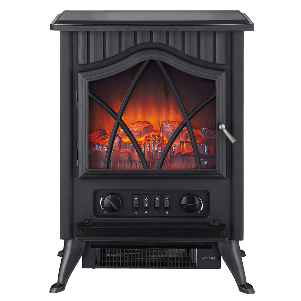 Para aquecer o corpo e o coração! Aconchego cheio de estilo para todos os momentos. Com 2 níveis de aquecimento + ventilação e com 1850W de potência, chama 3D com incrível realismo, design retrô para deixar qualquer ambiente mais aconchegante e sem cheiro de fumaça!